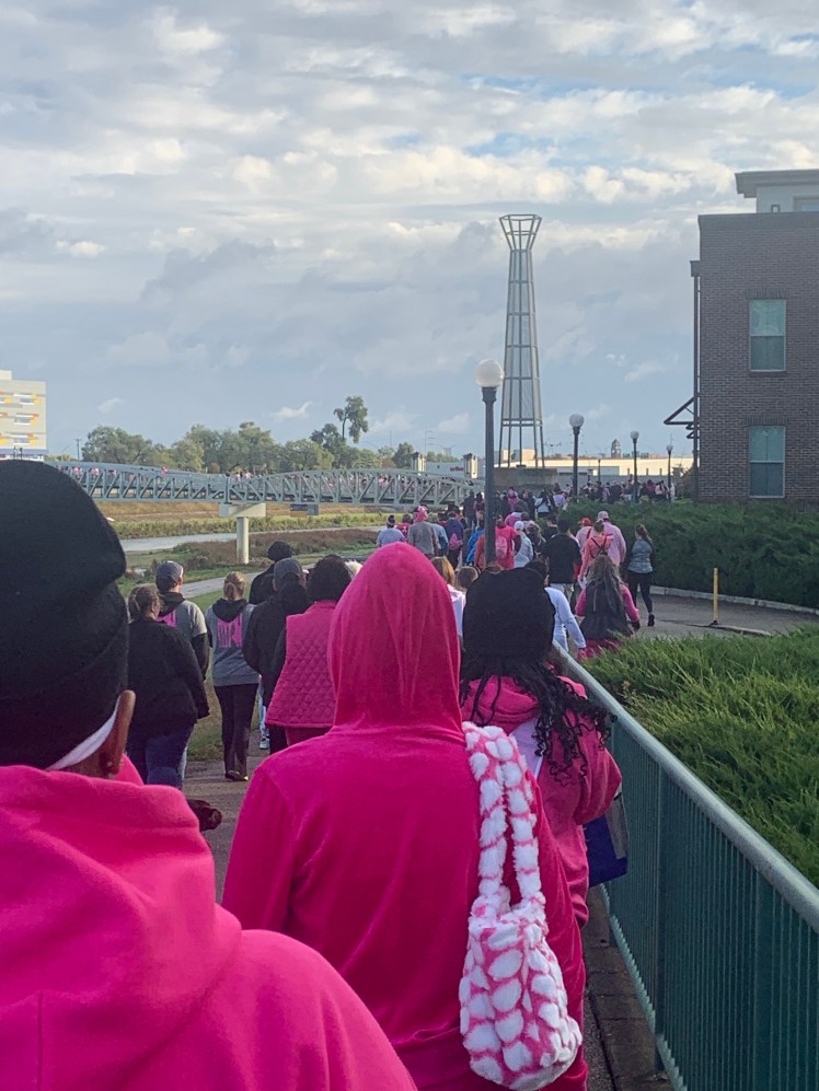 I need guidance through each season of my life. Curiosity and learning go hand in hand. I look for this to lead me to interacting with people with purpose and connection. And yet you can get off track if you aren’t careful. Sometimes a walk can change your trajectory. I participated in a breast cancer walk earlier this month. It was still raining 20 minutes from the walk start. But then the clouds rolled away and out comes the sun. But that wasn’t the only thing. I felt rejuvenated being a part of a sea of pink attired supporters, mostly women of all ages, but men and children and community groups. That’s not all. I thought about friends who were cancer survivors and those who were gone. Remember.